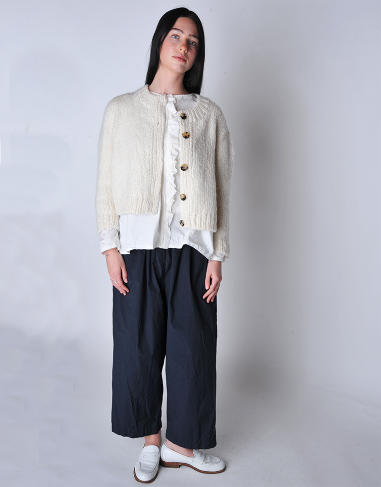 A true testament to artisanal craftsmanship, this burgundy cashmere sweater is a collaboration between Miki Zanini and myself (Elizabeth), designed to embody timeless elegance effortlessly.