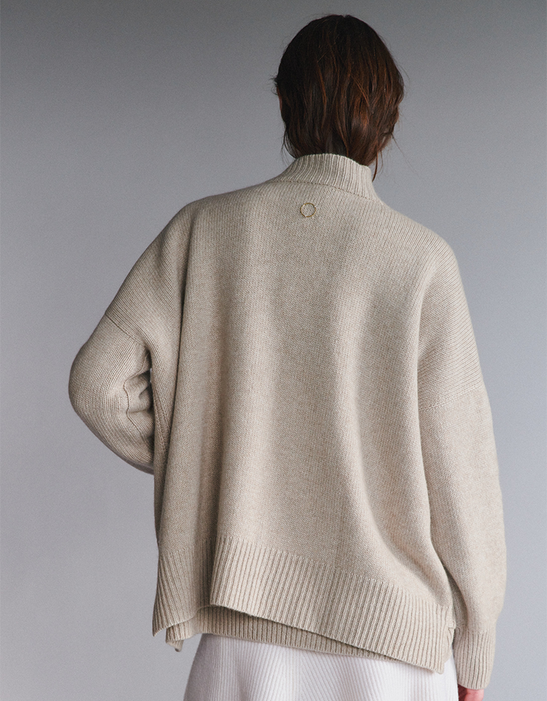 The Aire is a stunning cardigan that is super classic and so unique at the same time - the perfect elegant cozy piece to throw over anything. The fit is oversized with architectural details on neckline and hem. Comes with the signature oversized Oyuna pin that can be used to close the front.
