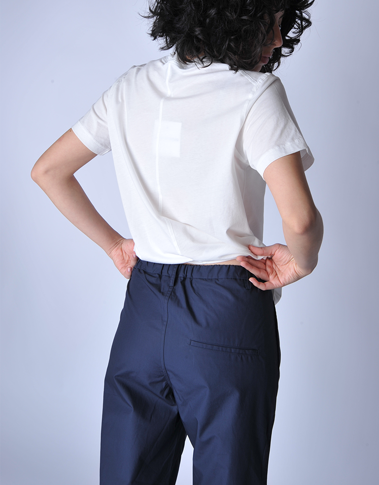 The Pico is a classic trouser with a slim easy fit. Slim waist band with side slash pockets, button fly, one back slash pocket and elastic in the back. Ankle length.