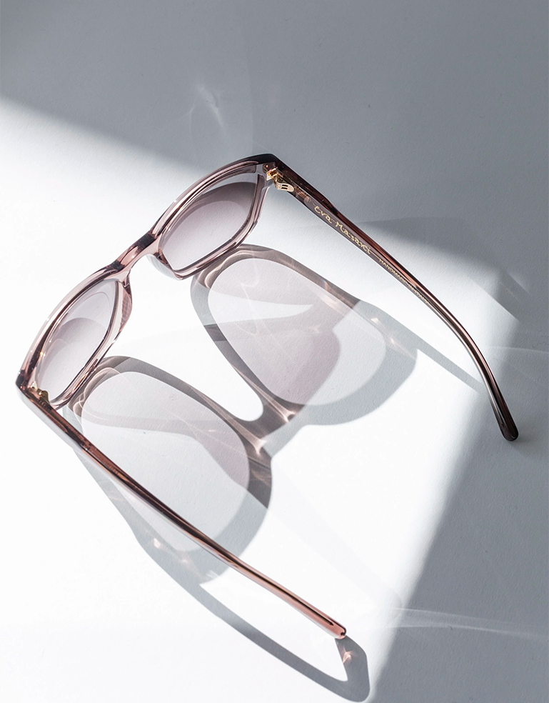 • Translucent taupe frame with a double gradient grey lens that fades from dark grey to light grey. The category 2 lens is ideal for gently sunny days.