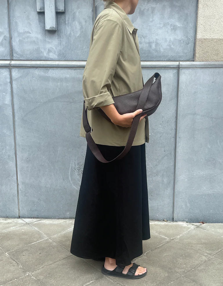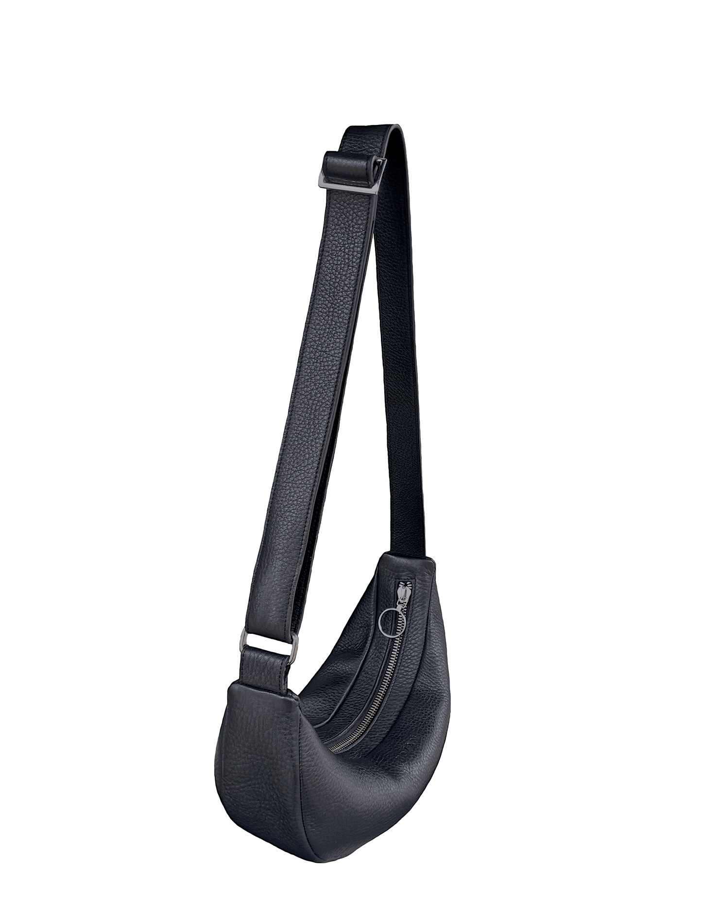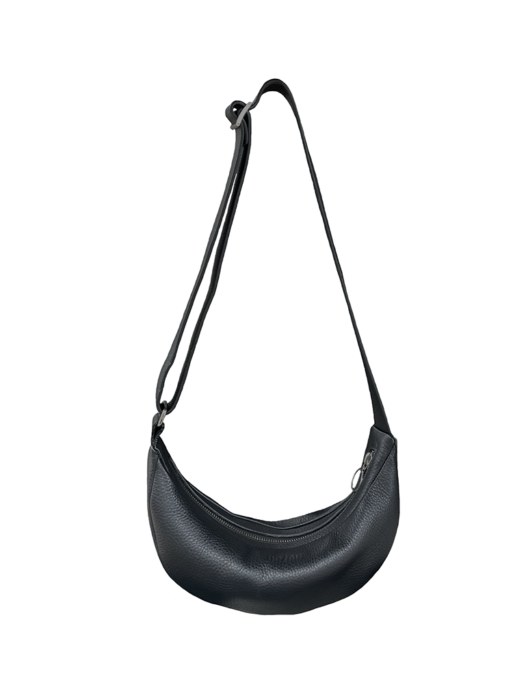 The Moon Bag is compact and curvy, making it one of the lightest and smallest styles offered by No An. It fits a fair amount though including your keys, wallet and phone and a few beauty items. The adjustable strap allows the Moon the be worn crossbody or on the shoulder.