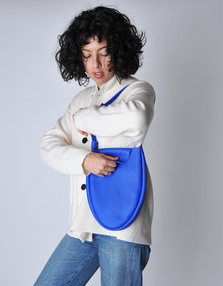 The Pebble Bag is a charming and practical oval shaped, slim shoulder bag. Softly structured in a supple leather and lightweight, it has a hidden magnetic snap tap closure, a detachable, adjustable shoulder strap. Two hidden pockets inside. This is a great bag for the essentials.