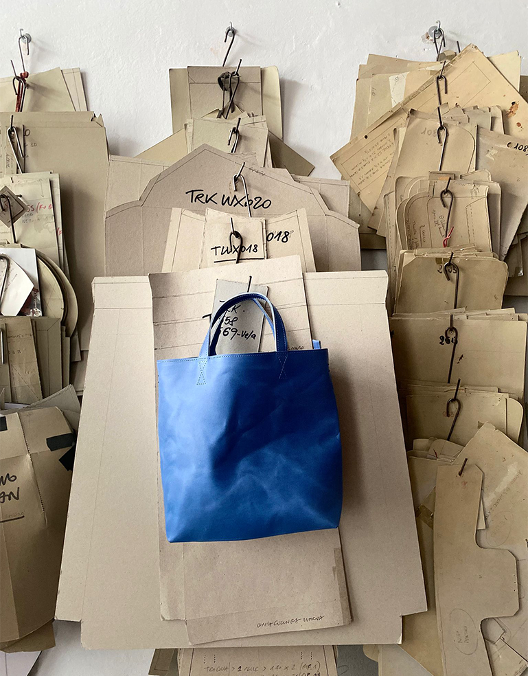 "We work with vegetable-tanned leather, a natural material that is a by-product from the food industry processed using tannins extracted from plants and trees. This traditional method gives the leather a warm, authentic character that evolves beautifully over time, developing a unique patina with use. Each piece subtly changes, making every object truly personal and alive. The leather undergoes a wax finishing treatment on the reverse side, allowing us to leave it unlined while still achieving a refined, clean result even on the raw edges. This detail enhances the material’s integrity and keeps the construction honest and essential, while maintaining a sophisticated finish.
