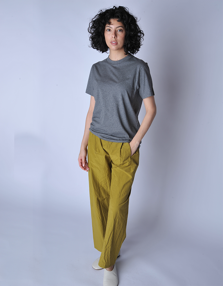 This classic tshirt is short sleeved, relaxed fit with a seam down the middle back.