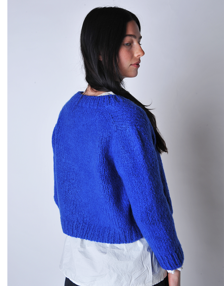 A true testament to artisanal craftsmanship, this burgundy cashmere sweater is a collaboration between Miki Zanini and myself (Elizabeth), designed to embody timeless elegance effortlessly.