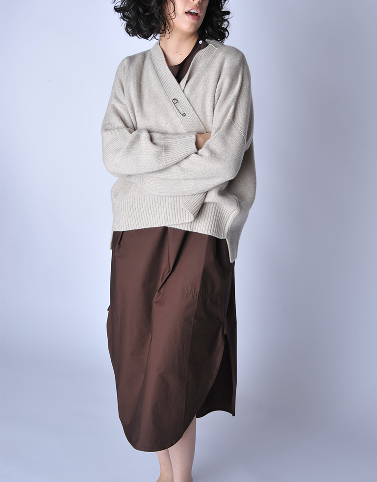 The Aire is a stunning cardigan that is super classic and so unique at the same time - the perfect elegant cozy piece to throw over anything. The fit is oversized with architectural details on neckline and hem. Comes with the signature oversized Oyuna pin that can be used to close the front.